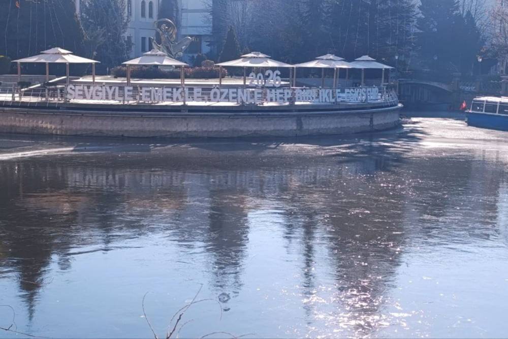 Eskişehir’de dondurucu soğuk: Porsuk Çayı buz tuttu